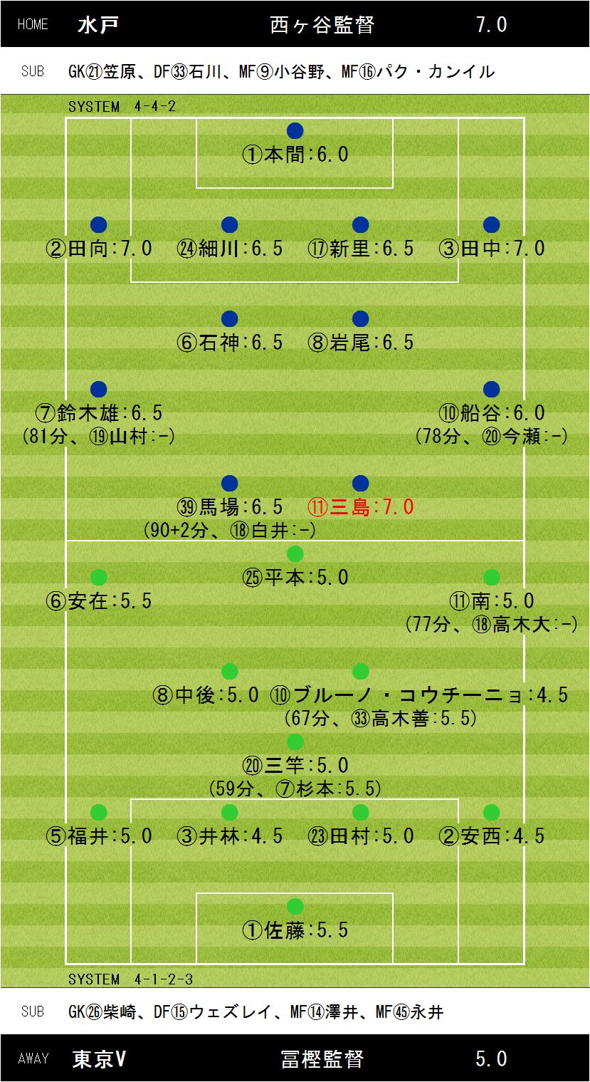 2−0【54分:三島(水戸)、57分:オウンゴール(水戸)】