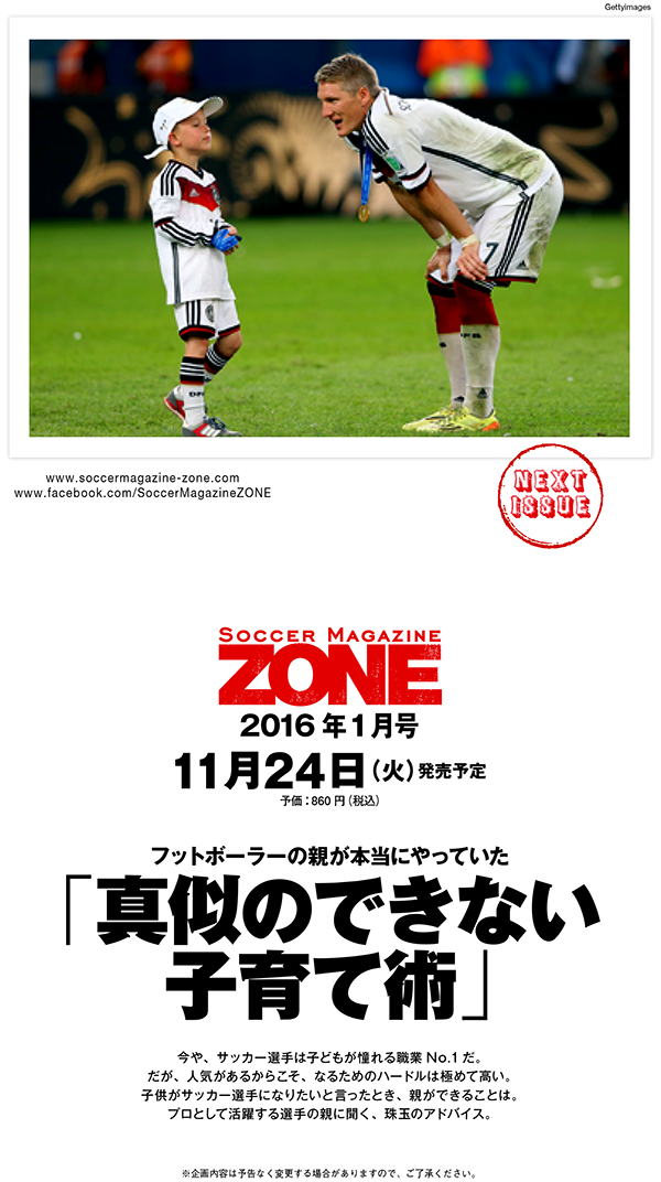- 「Soccer Magazine ZONE 12月号」 2015年10月24日(土)発売