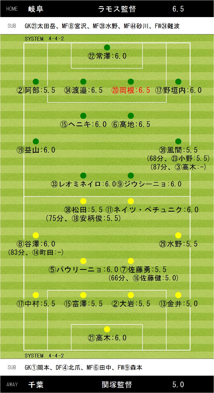 1−0【82分:岡根(岐阜)】