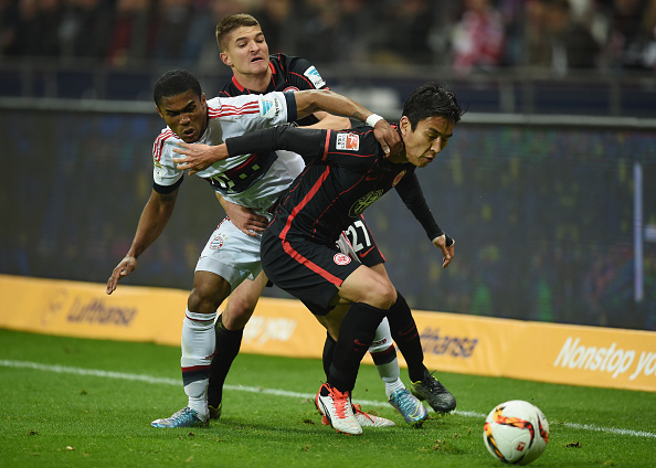 超強力な攻撃陣を誇るバイエルン相手に、フランクフルトは自陣に深く引く専守防衛に務めた。11月4日のUEFAチャンピオンズリーグのグループステージ第4節アーセナル戦に向けて、ドイツ代表トーマス・ミュラーを先発から外したペップ・グアルディオラ監督だが、バイエルンの攻撃力は凄まじい。フランクフルトは本拠地のコメルツバンク・アレーナで70パーセント近いボール支配率を許した。前半10分にはチリ代表MFビダルに強烈なヘディングシュートを打たれるなど、再三チャンスを作られたが必死に耐えた。