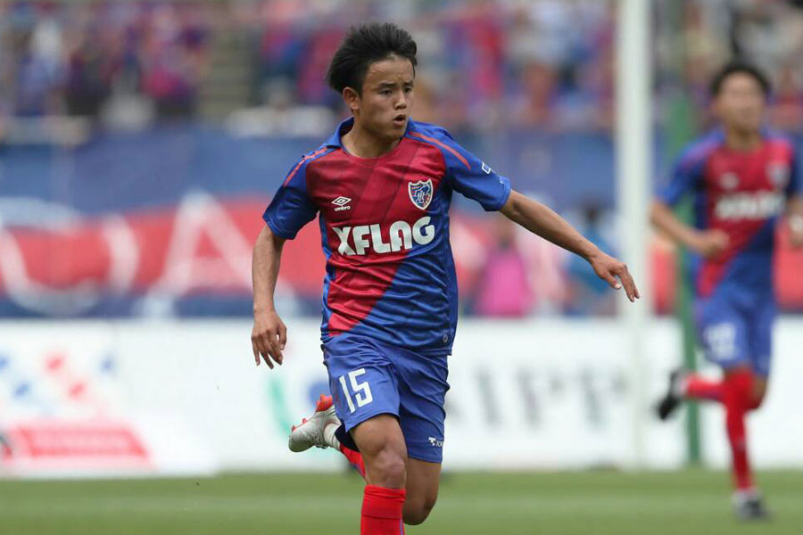 首位のFC東京が1日のJ1第14節で5位の大分トリニータと対戦し、本拠地で3-1と快勝した。日本代表に初選出された17歳MF久保建英は2ゴールと活躍したなか、終了間際に無人のゴールへ向かって決めた一撃について自ら解説。「あそこでパスを出してミスったら…」と明かしている。