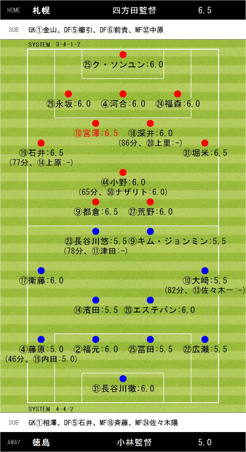 2-0【45+2分:宮澤(札幌)、50分:都倉(札幌)】