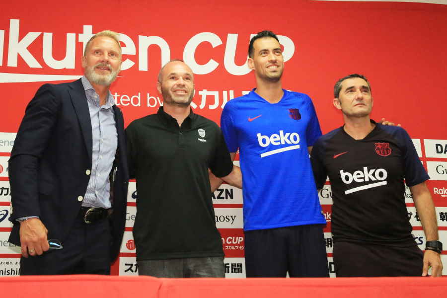 スペインの名門バルセロナに所属するスペイン代表MFセルヒオ・ブスケッツが、27日の楽天カップ・ヴィッセル神戸戦に向けた前日会見に出席し、かつてバルセロナやスペイン代表で共闘した神戸MFアンドレス・イニエスタへの思いを吐露している。