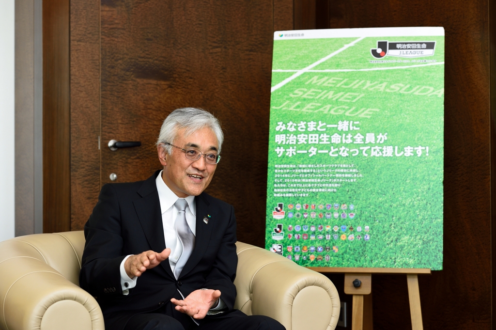 そんな向かい風の中で迎えた2015年1月、Jリーグに救世主が現れる。前年からJ3リーグのタイトルパートナーを担った明治安田生命保険相互会社(取締役 代表執行役社長・根岸秋男)が、Jリーグ全体のタイトルパートナーとして名乗りを上げたのだ。