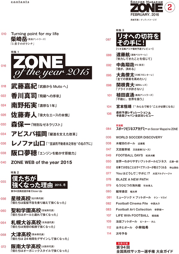 - 「Soccer Magazine ZONE 2月号」 2015年12月24日(木)発売