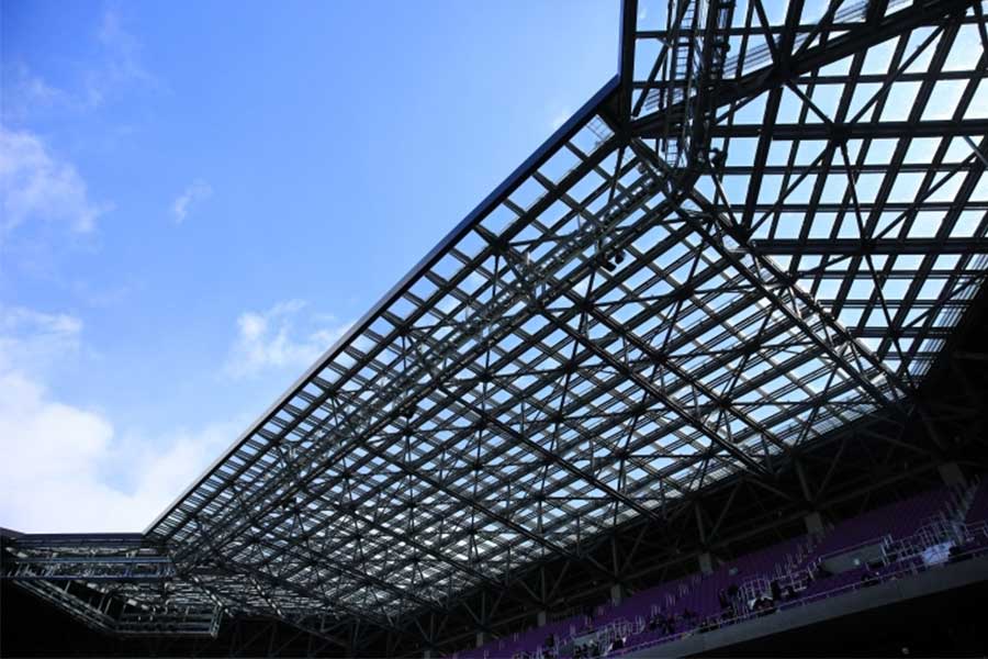 アウェイ席(南)のガラス屋根 【写真:Noriko NAGANO】