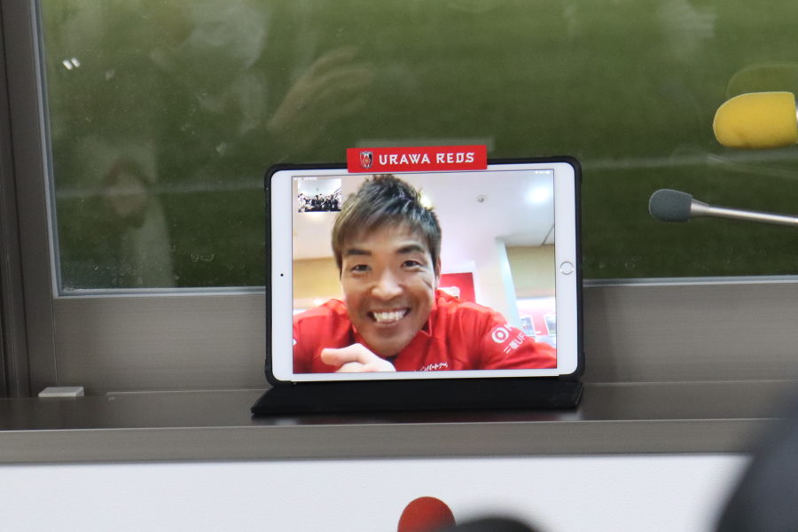 そうしたなかで浦和の広報部は、午後練習の終了後に主将の西川が報道陣の取材に映像を介して対応する措置を取った。タブレットの画面で笑顔を見せる西川に、報道陣から質問がされる形式になった。