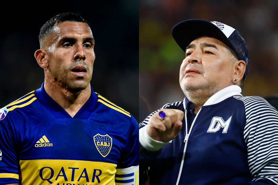 逆転優勝のボカFWテベス、敵将マラドーナとの“熱い口づけ”に反響 「歴史的画像!」