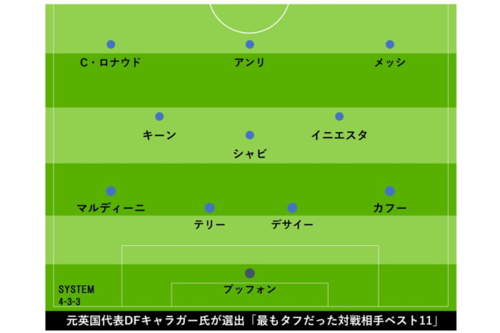 【布陣一覧】元英国代表DFキャラガー氏が選出――「最もタフだった対戦相手ベスト11」…神戸イニエスタもメンバー入り