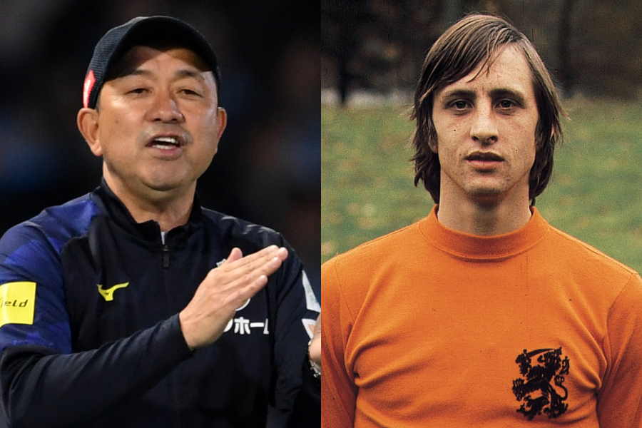 公称ではクライフ氏は風間氏より身長が3cm高いだけで、ほぼ同じ体格。サッカーはパワーやフィジカルだけではないという考えは、風間氏のスタイルに大きな影響を与えたようだ。