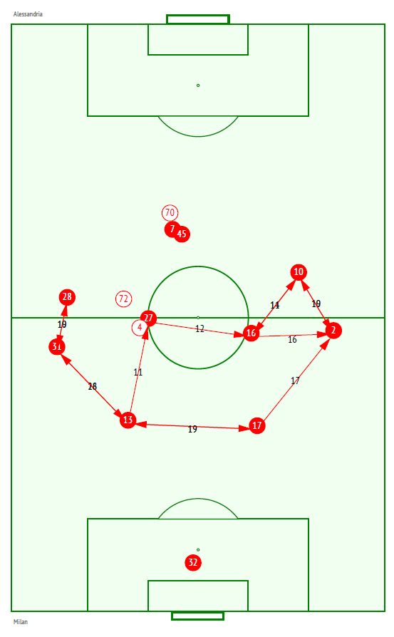 ここ数試合の本田は決定的なプレーだけでなく数字でもインパクトを残しているが、アレッサンドリア戦でもその勢いはとどまらなかった。3部相手の一戦で、チーム全体のボールポゼッションが59%対41%と相手を押し込む展開だったとはいえ、この日のプレー総アクション数105回はチーム3位の数字。特に攻撃アクション数に絞ると101回となり、MFとFWの中では最多のプレー数を記録した。