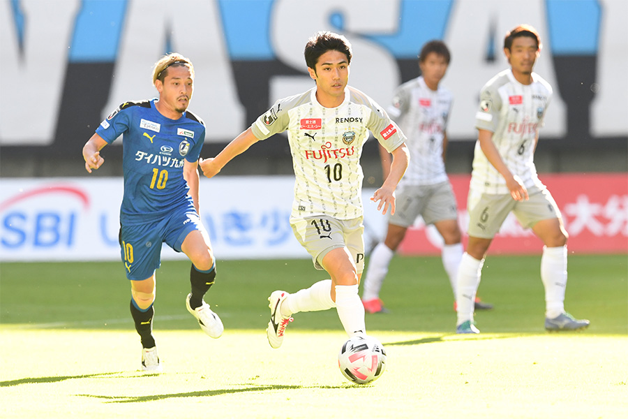 後半に入ると同時に、川崎は中村とFW長谷川竜也をベンチに下げ、MF田中碧とMF三笘薫を投入。さらに後半15分にはFW旗手怜央も投入し、得点を奪いに行く。数的不利ながら前半よりも迫力ある攻撃を見せ始めた川崎だが、大分も攻守ともに粘り強い戦いを見せて一進一退の攻防となる。