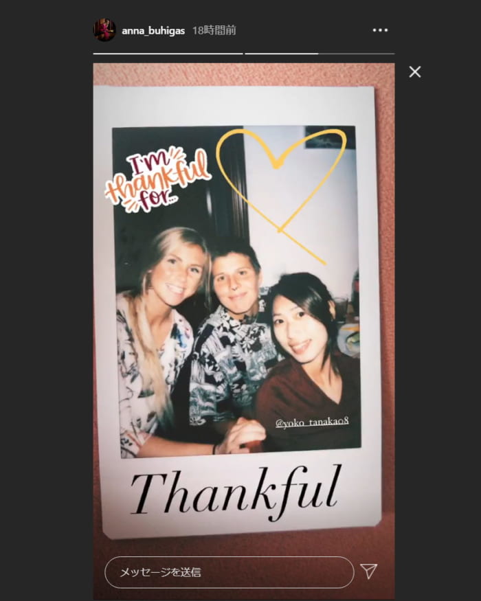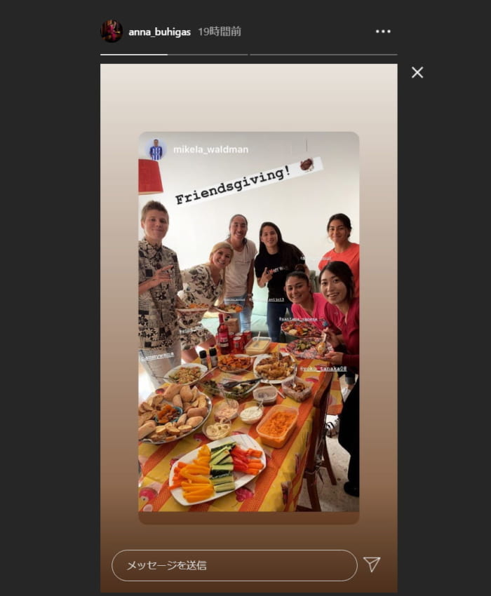 アンナ・ブヒガスが公式インスタグラムで公開、田中陽子らウエルバメンバーによる“フレンズギビング7ショット”