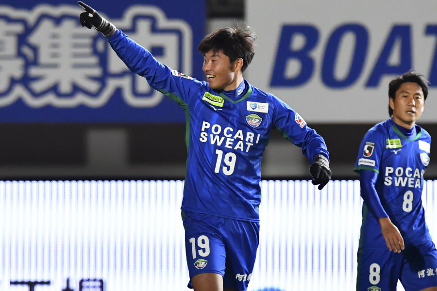 試合は序盤から徳島がボールを支配し、大宮の守備を少しずつ動かしながら攻め込む。そして前半21分、MF浜下瑛が右サイドを突破して上げたクロスをエースFW垣田裕暉が頭で合わせ、絶妙なコースに飛んだシュートがゴールネットを揺らして先制点となった。垣田はシーズン17得点目となっている。