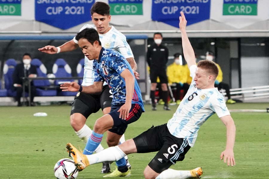 東京五輪南米予選で1位となったアルゼンチンとの2連戦には、前日に行われたA代表の韓国戦(3-0)に出場したDF冨安健洋以外の東京五輪世代の主力メンバーが集結。2列目の中央にMF久保建英が入り、右にMF三好康児。左サイドはサイドバックにDF旗手怜央、サイドハーフにMF三笘薫という川崎フロンターレのコンビが入った。