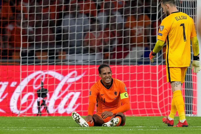 【写真】クロップ監督も状態を心配… オランダ代表DFファン・ダイクが負傷した瞬間