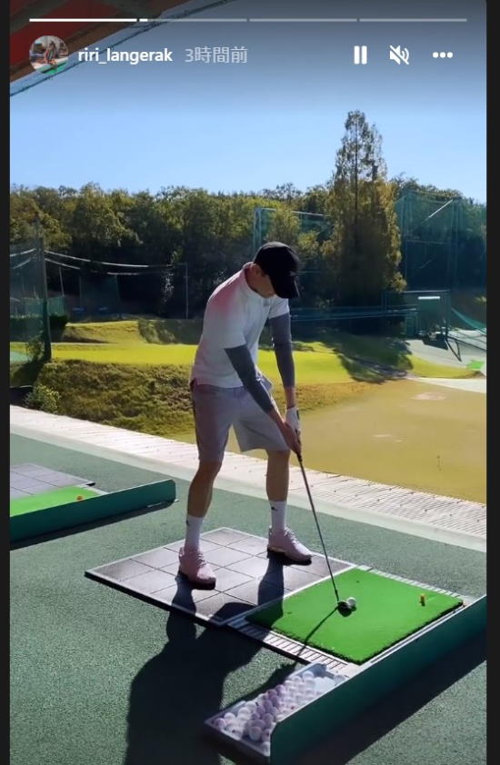 【画像】妻リアンさんが公式インスタグラムで公開、ランゲラックのゴルフウエア姿で“打ちっぱなし”オフショット