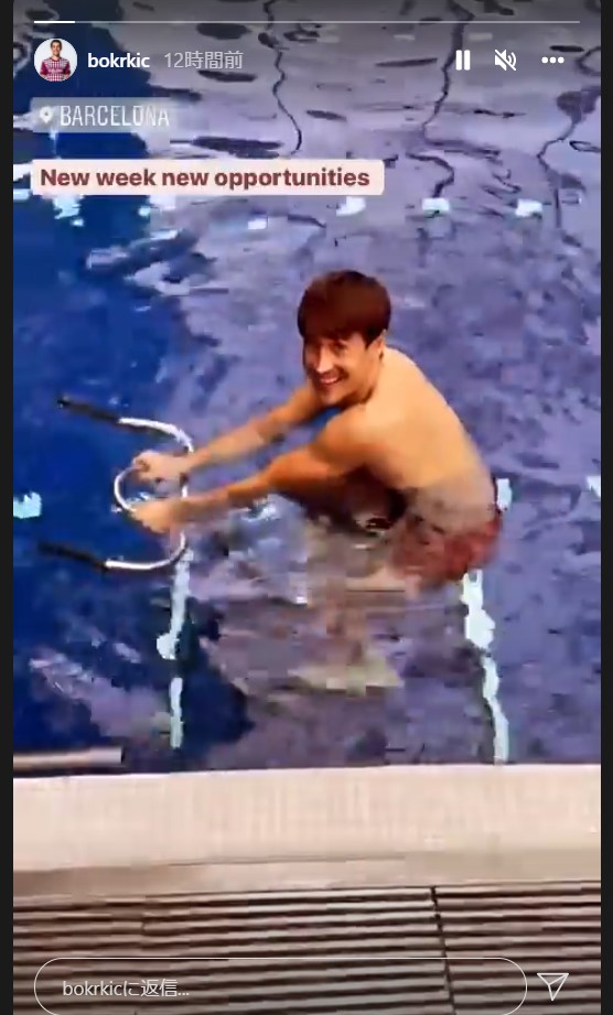 神戸FWボージャン、プールで“水中バイク”ショット公開 完全復活に向けて意欲満々