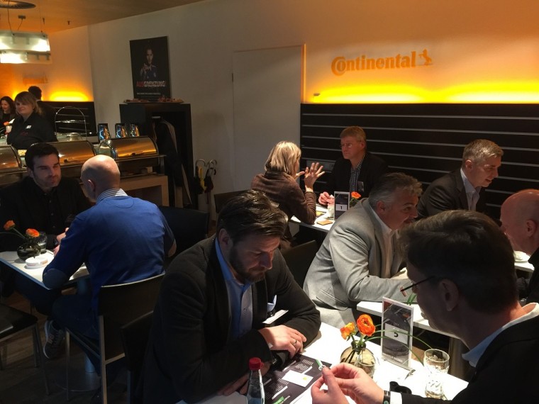 VIPエリアを取材して最も驚きだったのが、この写真。何のシーンかお分かりだろうか。この『コンチネンタル』社のブースでは、事前に選ばれたクラブのパートナー12社の担当者たちが向かい合って座っている。5分間の制限時間を与えられ、お互いに会社の仕事内容についてプレゼン大会を行なうのだ。5分経つと、奥の方で座っている女性がチャイムをチーンと鳴らし、席替え。これを繰り返し、全員がプレゼンし合えるようにする。まさに企業の“合コン”である。