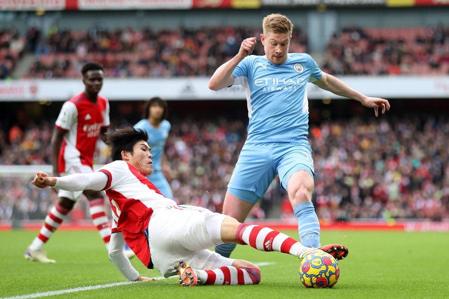 アーセナルは2022年元日、プレミアリーグ第21節で首位マンチェスター・シティと対戦し、先制するもPKを献上して同点とされ、その後退場者も出したなかで、なんとか1-1で勝ち点1を得た。前節にポルトガル代表DFセドリック・ソアレス、イングランド代表MFエインズリー・メイトランド=ナイルズとともに、新型コロナウイルス陽性反応が発表されていた日本代表DF冨安健洋が先発復帰した。