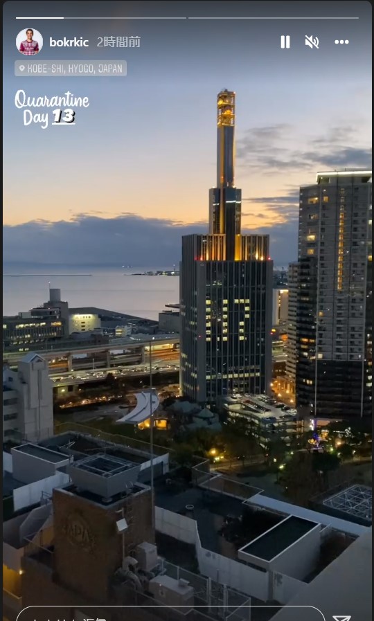 【画像】神戸の元スペイン代表FWボージャン、ホテル隔離13日目に撮影した「1.17」窓明かりショット