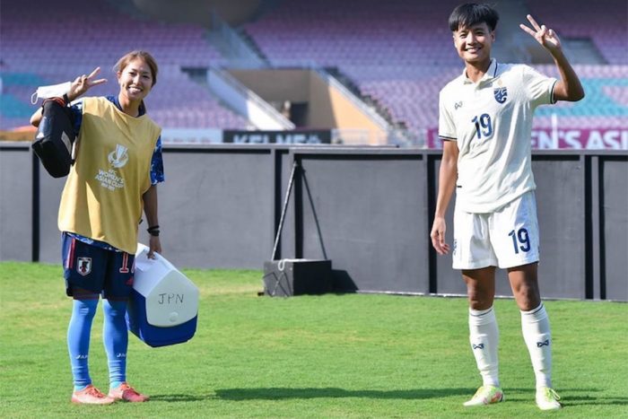 【写真】元なでしこFW丸山桂里奈が公開した元同僚のなでしこジャパンMF成宮唯&タイ女子代表FWピツァマイ・ソルンサイの2ショット