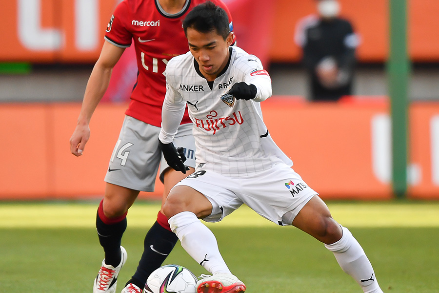 川崎が自軍エリアからボールをつなぐと、パスを受けたチャナティップは前後左右から4人に囲まれる。しかし、相手を背負いながら軽業師のような身のこなしでボールを動かしてプレスを一度いなすと、そのままライン際を駆け上がり、再び2人に囲まれてしまう。だが、ここでも絶妙なターンで抜き去り、スルーパスを供給してビッグチャンスにつなげた。
