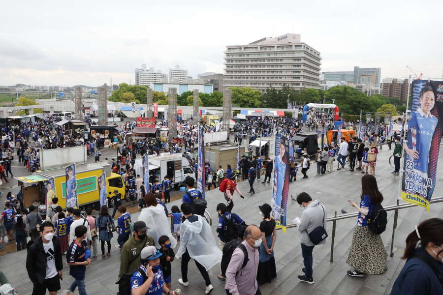 ということで、5月7日にJリーグの名古屋グランパス戦が日産スタジアムで開催されました。約1か月ぶりのホームゲーム、そしてベトナム帰りの選手たちには多くの声援や労いの声が待っていました。