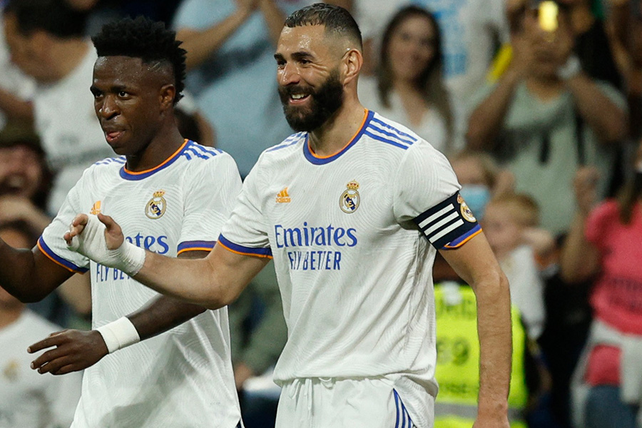 後半に入ってもレアルの勢いは止まらず、同23分にベンゼマが躍動する。モドリッチのキラーパスに抜け出したベンゼマが相手GKと1対1に。キックフェイントを織り交ぜた華麗なステップでGKを翻弄し、縦にかわすと冷静に中央に折り返し、ヴィニシウスのこの日2ゴール目をお膳立てした。