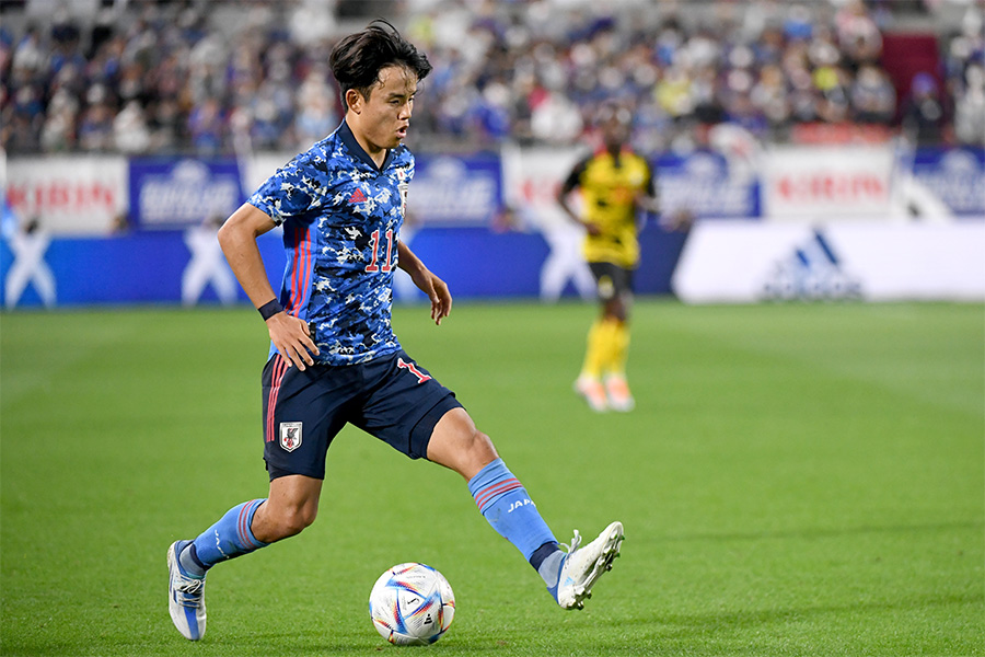 日本代表(FIFAランキング23位)は6月10日、ノエビアスタジアム神戸で行われたキリンカップでガーナ代表(同60位)と対戦し、4-1で勝利を収めた。国際Aマッチ17試合目の出場で代表初ゴールをマークしたMF久保建英(マジョルカ)が試合直後に自身のSNSを更新し、FW三笘薫(ロイヤル・ユニオン・サン=ジロワーズ)へ「薫君ありがとう」と感謝している。