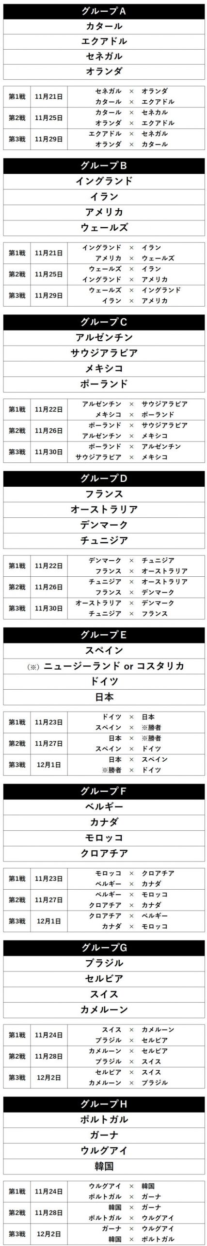 【一覧】カタールW杯、全32か国中31か国の出場決定! 各グループの組み分け&対戦カード日程