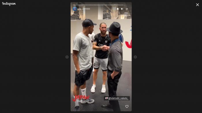ムバッペに続いてスターと“共演” 中田英寿氏、元スペイン代表DFラモスに握手を求められる瞬間に脚光