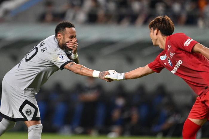 【写真】ネイマール、PK獲得シーンでG大阪守護神・東口順昭と笑顔でタッチ