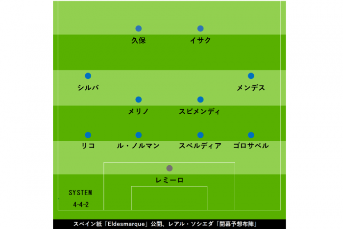 【布陣図】スペイン紙「Eldesmarque」公開、レアル・ソシエダ「開幕予想布陣」