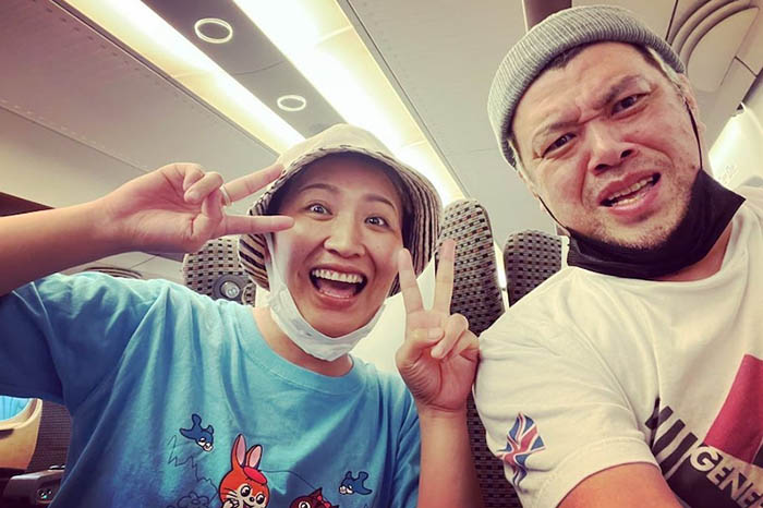 【写真】丸山桂里奈がアメーバオフィシャルブログで公開、新幹線で“遭遇”した芸人「野生爆弾」くっきーとの2ショット【写真:ⓒ丸山桂里奈オフィシャルブログ Powered by Ameba】