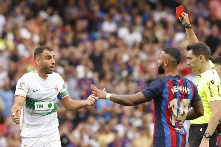 現地時間9月17日に行われたリーガ・エスパニョーラ第6節FCバルセロナ対エルチェの一戦は、3-0でホームのバルサに軍配が上がった。そのなかで、前半14分にエルチェDFが一発退場となったシーンに海外メディアが注目している。