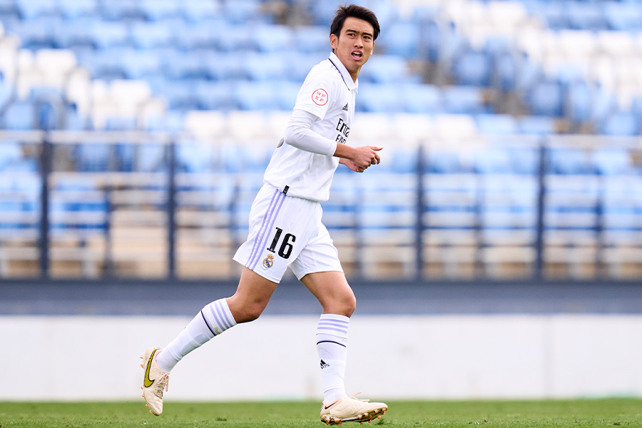下部組織のフベニールA(U-19)から今季昇格したMF中井卓大はここ3試合連続でベンチ入り。そして第5節バダホス戦の終盤、ホームスタジアムで大勢のサポーターとトップチームのカルロ・アンチェロッティ監督が見守るなか、18歳でプロ公式戦デビューを飾った。短い時間のなか、ジネディーヌ・ジダン氏の三男・MFテオ・ジダンと4-4-2のダブルボランチを形成し、身体を張ったプレーで3-1の勝利に貢献した。