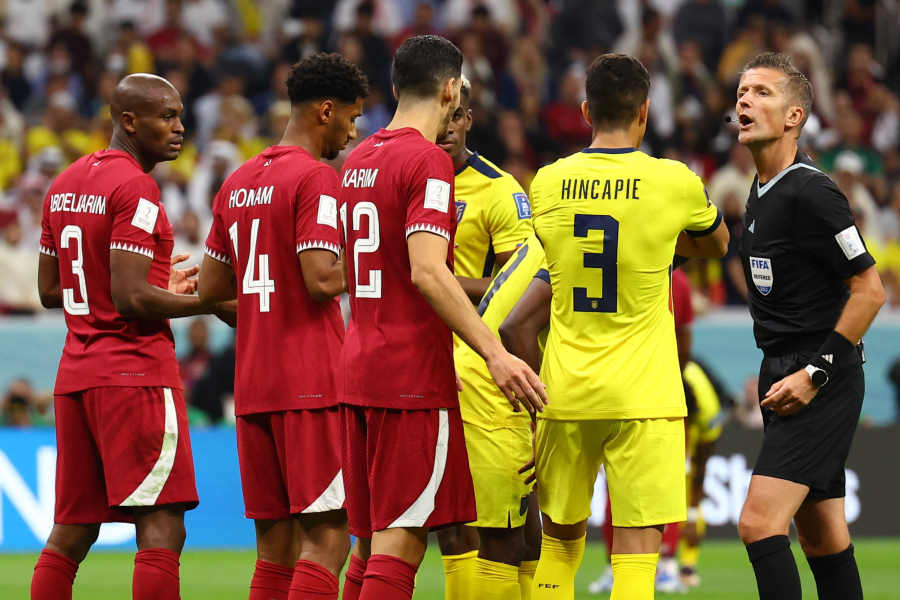 開催国カタールにとって記念すべき初のW杯の舞台となったこの一戦では前半3分、エクアドルDFペルビス・エストゥピニャンがゴール前に入れたボールがこぼれ、その流れからFWエネル・バレンシアが頭で押し込んでネットを揺らした。記念すべき大会初ゴールかと思われたが、VARオンリーレビューの結果、主審は判定を変更し、オフサイドがあったとしてゴールは取り消された。
