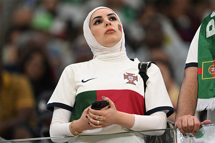 まさに欧州と中東の融合。白のヒジャーブにあえて同色系のポルトガルのアウェーのユニフォームを着用し、ダーググリーンとレッドの線をアクセントとしている。なかなかのおしゃれぶり。