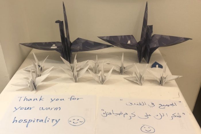 【写真】日本代表が滞在ホテルに残した「折り鶴」&「ラディソン・ブル・ホテル・ドーハ」外観