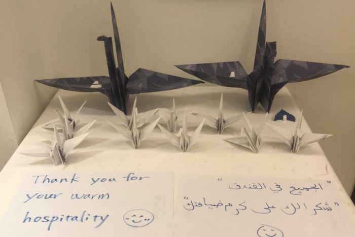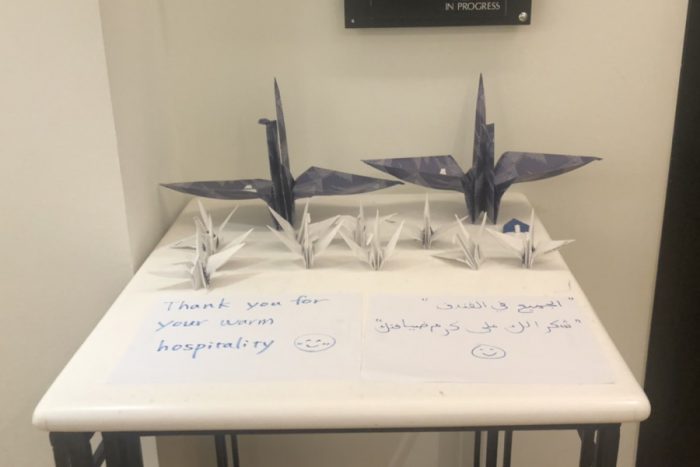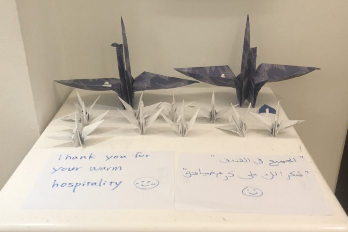 【写真】SNSで話題、日本代表からカタール拠点ホテルへの贈られた「折り鶴」