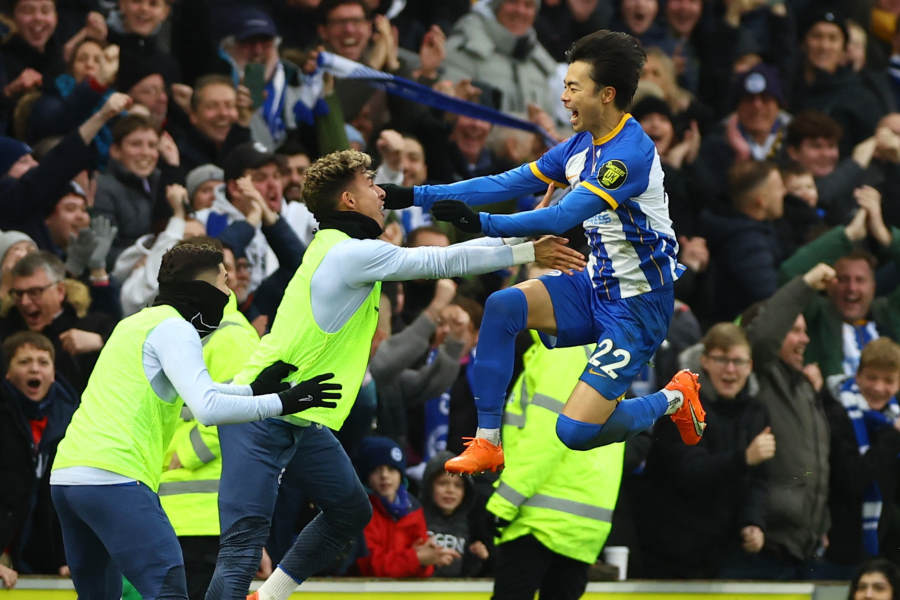 イングランド1部ブライトンは現地時間1月29日、FAカップ4回戦でリバプールと対戦し、2-1で勝利した。日本代表MF三笘薫はスタメン入りを果たし公式戦7試合連続で先発のピッチに立ったなか、後半アディショナルタイムに決勝ゴールをマークし、劇的勝利に貢献した。
