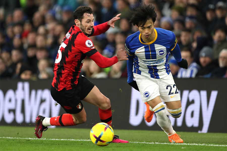 イングランド1部ブライトンの日本代表MF三笘薫は、プレミアリーグ第22節のボーンマス戦で決勝ヘッドをマークし、1-0勝利に貢献。勝負強さに加え、高技術によるドリブル突破にも注目が集まるなか、相手DFを無力化した巧みなドリブル突破シーンに「評論家が驚いた」と現地メディアが熱視線を送っている。