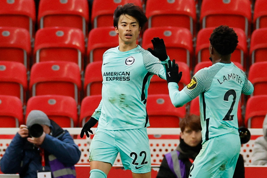 イングランド1部ブライトンの日本代表MF三笘薫は、現地時間2月28日のFAカップ(杯)5回戦の英2部ストーク・シティ戦で決勝弾をアシスト。1-0の勝利に貢献した。後半途中まで出場したなかでの多彩なプレーに反響が広がっている。