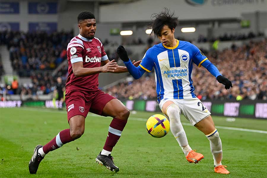 イングランド1部ブライトンの日本代表MF三笘薫は、現地時間3月4日のプレミアリーグ第26節ウェストハム戦でPK奪取&今季6点目の活躍により、4-0勝利に貢献した。パスや動きの質で違いを見せるとともに、真骨頂のドリブル突破でも見せ場を作ったなか、試合終盤の加速力に驚きの声が広がっている。