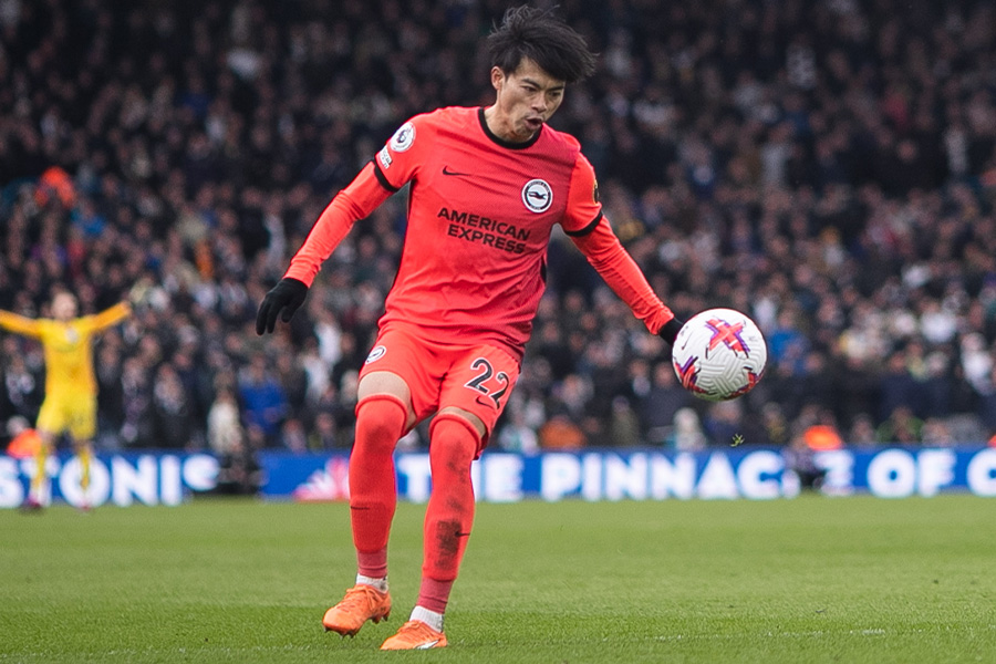 イングランド1部ブライトンの日本代表MF三笘薫は、現地時間3月11日に行われたプレミアリーグ第27節リーズ・ユナイテッド戦(2-2)で前半の先制点をアシストするなど、チームの全得点に絡む働きを見せた。対峙した相手を翻弄するプレーに、海外記者は“罪深い”との見解で称賛している。