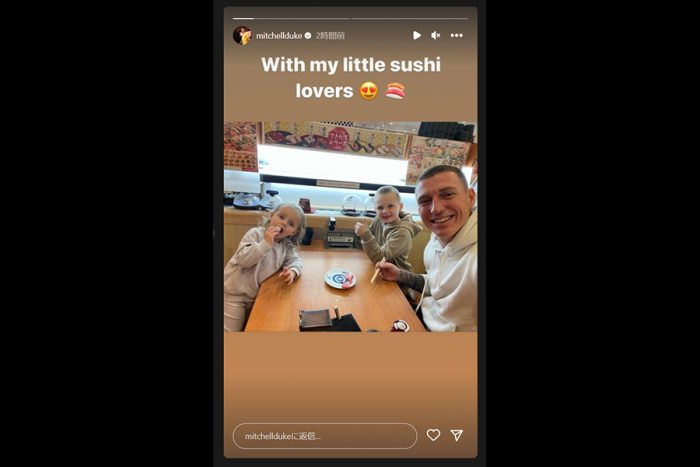 【画像】町田FWデュークが7歳の息子&2歳の娘と回転寿司を堪能