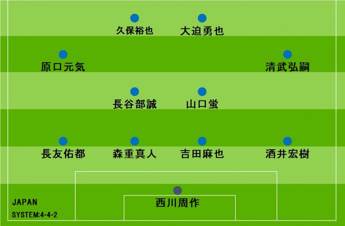 サウジアラビア戦の日本代表スタメンは以下のとおり。