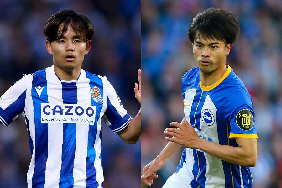 2022-23シーズンの欧州サッカーシーンでは、数々の出来事が起こった。度肝を抜くスーパープレーや物議を醸したファウルシーンなど、数々の印象深い衝撃的場面があったなかで、スペイン1部レアル・ソシエダの日本代表MF久保建英と、イングランド1部ブライトンの日本代表MF三笘薫は世界中で話題となった。そのなかでも、久保がリーガ・エスパニョーラ第3節エルチェ戦(1-0)で見せた動きと、三笘が3-0で快勝したプレミアリーグ第20節リバプール戦で見せたプレーに注目する。