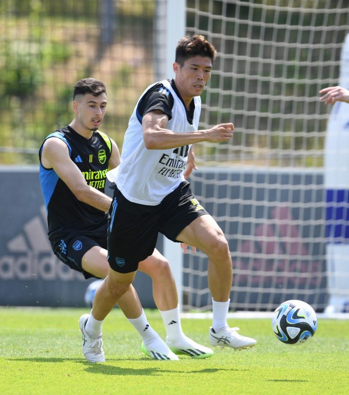プレシーズンでマルティネッリとマッチアップする冨安健洋【写真:Getty Images】